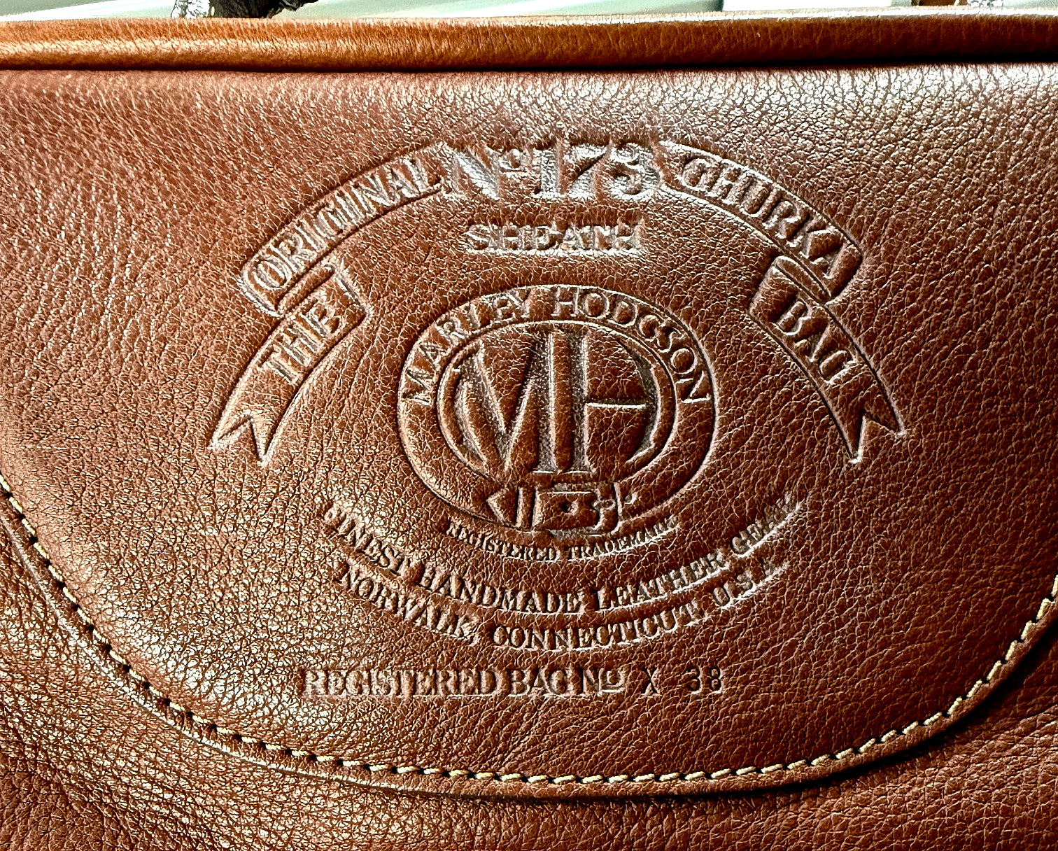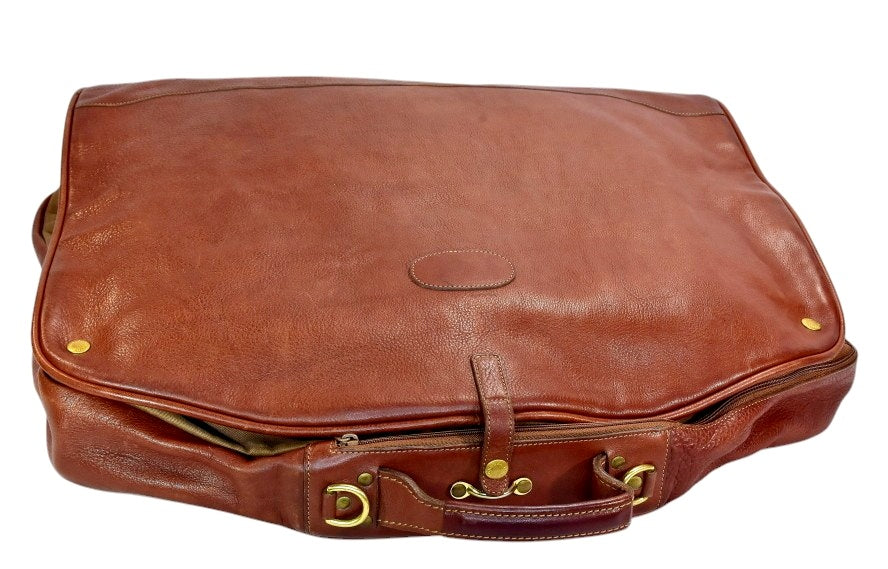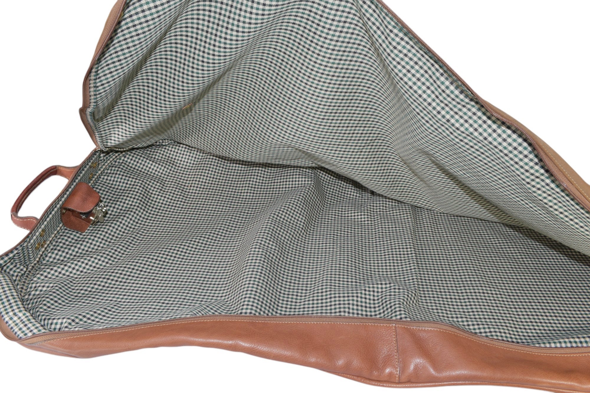 The Sheath, the No. 173 Ghurka's designer garment bag, was made for those individuals whose personal standards of style, taste, and travel were not easily satisfied. This compact, bi-fold bag provides a convertible hanging system to meet your varied needs. It is made of Ghurka's signature Chestnut Vintage Leather 38, one of the best leathers Ghurka has ever made. Tanned in an organic “tea” of mimosa and Quebracho tree barks, a fantastic choice for making any long-lasting luxury bag! Representing the pinnacle of both style and function, with excellent character and charisma from our collection.