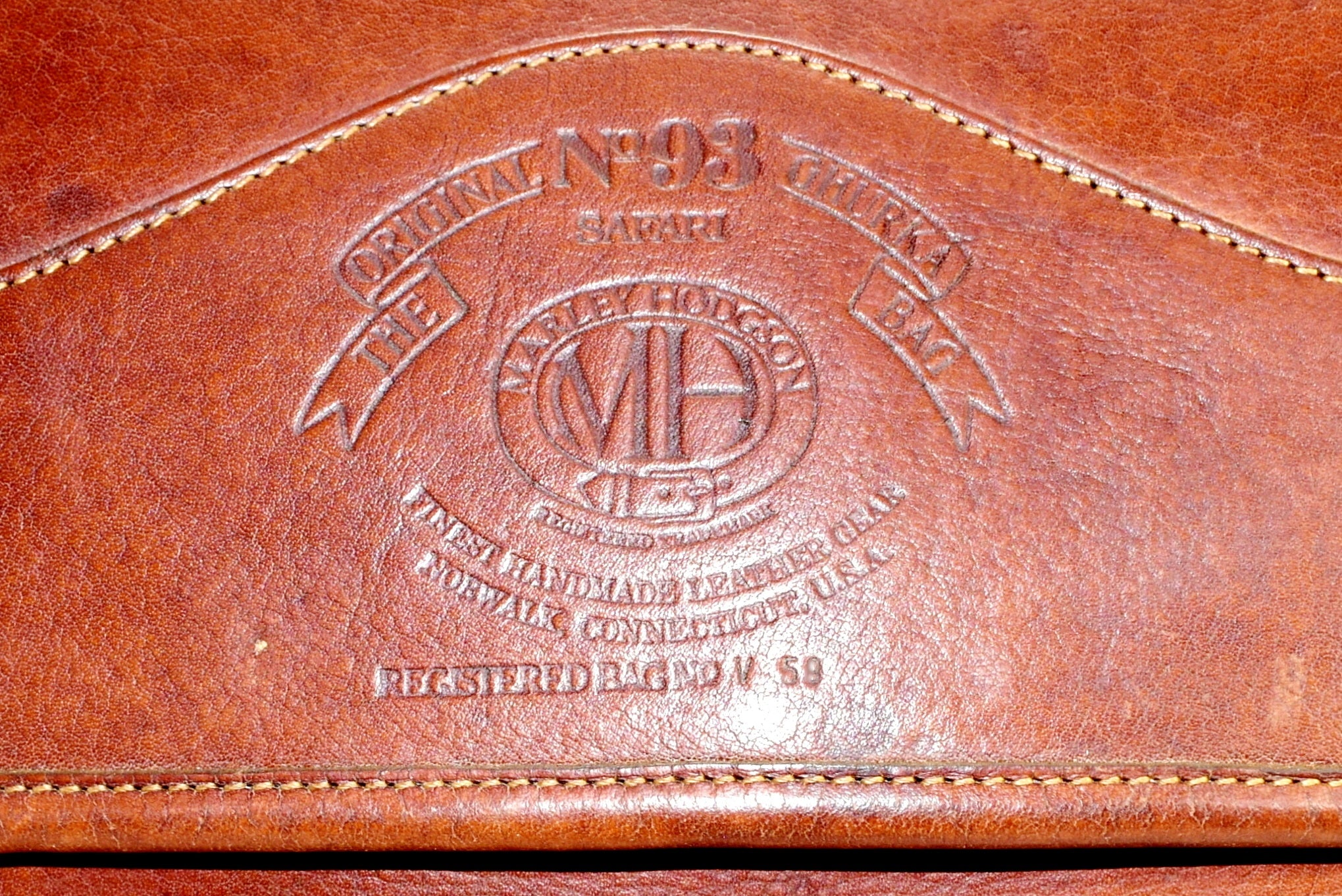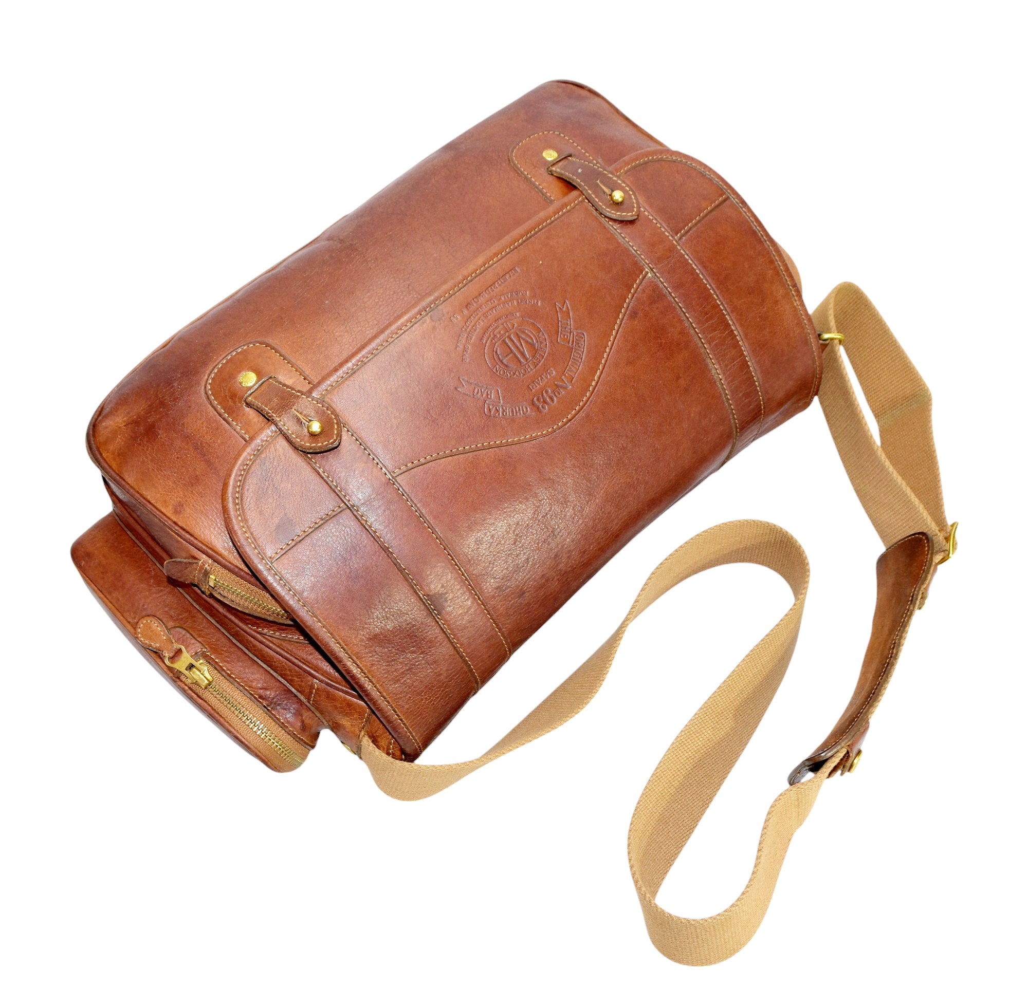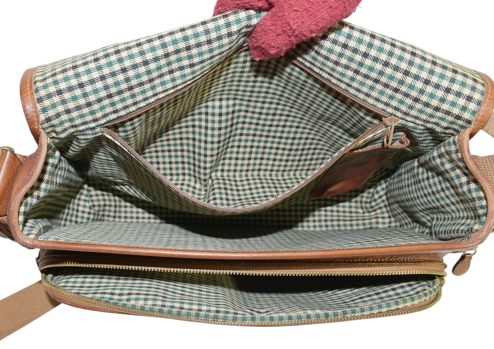 Safari No. 93 reflects the quality that has gone into this Ghurka messenger Bag. The character and functionality can't be missed. Expert craftsmanship is highlighted in this luxurious chestnut vintage Leather 38 cross-body messenger bag. To design this bag, professionals, men, and women who travel frequently and combine or switch activities often, were in mind. The sophisticated structure, roomy main compartment, flap-top closure with two extended zipper pockets in front, a wide-adjusted shoulder strap, extended side pocket, and full-length pocket in back for a small umbrella or newspaper make this brief a versatile option for a remote office. The bag is in fantastic condition and embodies the craftsmanship found in all Ghurka items.
